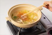 野菜、きのこに火が通ったら、ぶりを鍋にさっとくぐらせたらぽん酢だれをお好みで付ける。