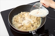 具材と小麦粉をよく炒めることでダマになりにくいホワイトソースが出来ます。お好みの野菜をプラスしてオリジナルのグラタンにしてもいいですね。