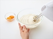 卵は卵黄と卵白に分けておく。卵白は泡立てて甘味料を数回に分けて加えながらメレンゲを作る。