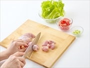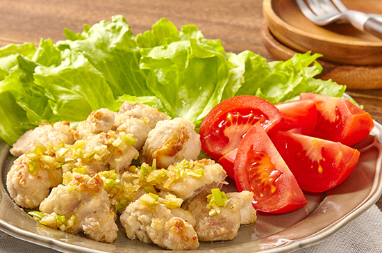 油を使用しなくても、かりっとした食感に仕上がります。鶏もも肉の皮をとることで、よりカロリーを抑えることができます。