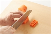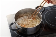 ①のにんじんともやしをお湯でさっと茹で、水気を切っておく。
