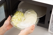 ①を600Wの電子レンジで2〜3分しんなりするまで加熱する。白菜は水気を絞り冷ましておく。