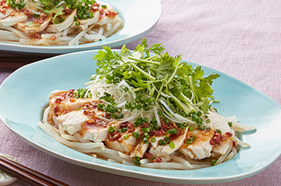 鶏むね肉は余熱で火を通すことで柔らかくしっとりと仕上がります。また、長ねぎとしょうがを加えることで肉の臭みをとってくれます。余熱の時間は目安なので様子を見ながら調節して見てください。鶏の茹で汁もタレに加えることで鶏の旨味が活かされます。香菜(パクチー)が苦手な方は、三つ葉やかいわれ大根などで代用を。