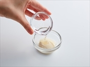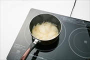 甘味料1と水50mlを入れた鍋にスライスしたりんごを加え、ひと煮たちさせたら火を消し冷ます。
