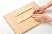 ②のスライスしたりんごを並べて、くるくると巻いて、バラの形をつくり、固まった⑤に乗せる。