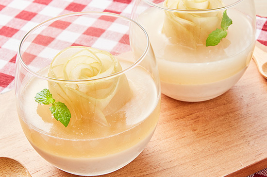 糖質控えめ。見た目にも華やか。食感の異なる2層のりんごゼリーです。