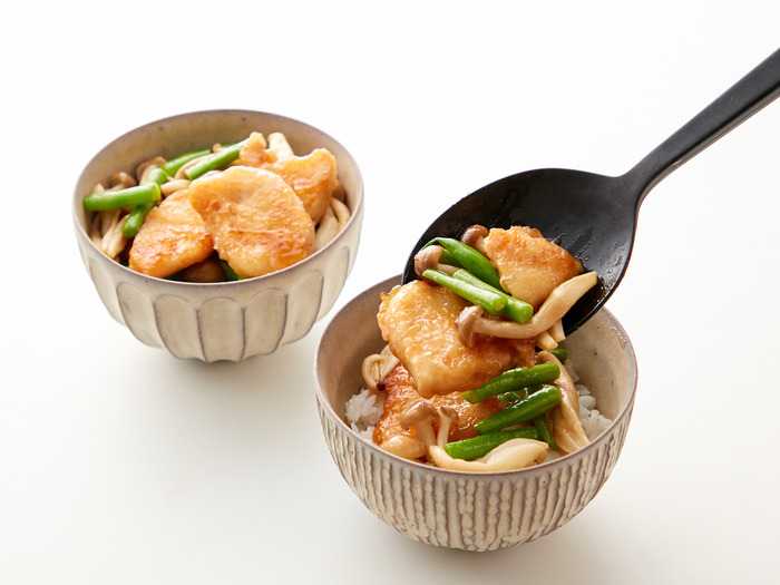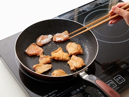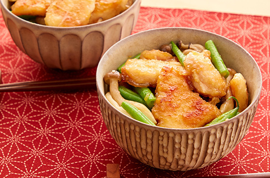 鶏むね肉をしっかり調味料に漬け込み、その後片栗粉でコーティングすることでしっとりとした食感に仕上がります。