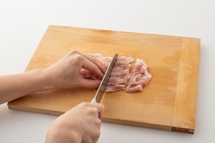 豚肉は食べやすい大きさに切り、薄力粉をうすくまぶす。