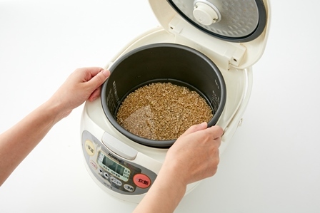 玄米を洗うときは、拝み洗い(玄米同士を擦り付けて傷をつけるように洗うこと)をすると吸水が良くなると言われています。玄米を皿に盛る際は、茶碗や小皿などを型にしてドーム型に整えると、よりおしゃれな仕上がりになります。