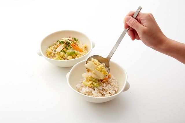もち麦を加えることで噛み応えをUPしているので、掻き込まずによく噛んで召し上がってください。