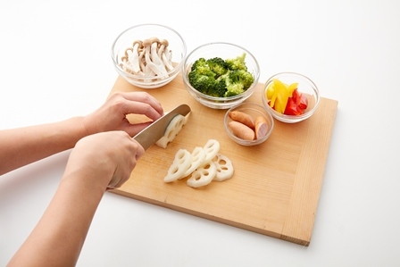 具材はゴロゴロ大きめに切ることで、見た目がかわいらしいだけでなく、よく噛んで早食いを防ぐことができます。炒めると香ばしく、茹でるだけでもさっぱりヘルシーにいただけます。