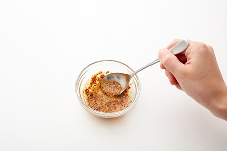 粒マスタードの味のインパクトで、醤油が少なくてもおいしくいただけます。
