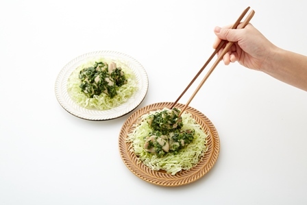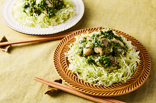 レンジで簡単にできます!柔らかさが特徴の春キャベツは生で食べるのがおすすめ。ボリュームアップもでき、ニラ塩だれと相性抜群です。