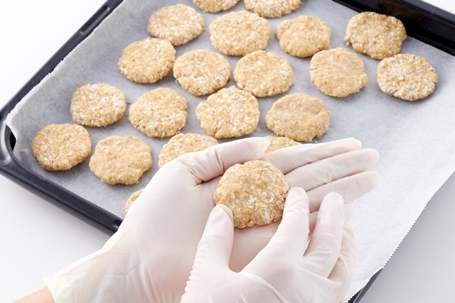 オートミールを入れたらざっくり手早く混ぜることがポイントです。クッキーの薄さは7mm程度にすると、出来上がりの食感がより良く仕上がります。