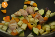炒め油を使用していないので焦げないように火は加減して下さい。野菜を炒める時は油の替りに大さじ2杯程度の水を加えてその水を飛ばしながら加熱してもらうと均一に加熱ができます。
