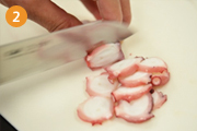 ゆでだこを5mmの厚さに切る。