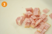 ベーコンを1cm角に切る。