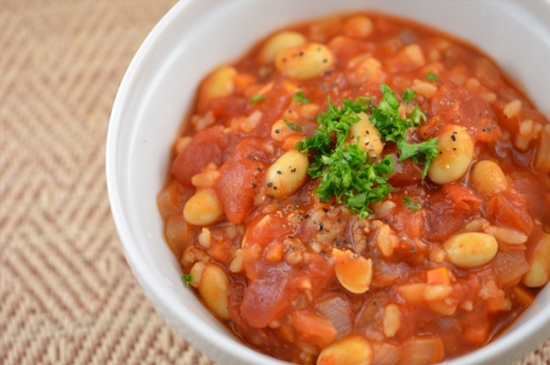 トマトからのリコピンと玄米、大豆、野菜からの食物繊維がたっぷり入っている和と欧の栄養満点な創作料理をご家庭で簡単に楽しめる一品です。 ※「チリコンカン」とは、スペイン語の「チリコンカルネ(唐辛子とお肉)」という意味です。