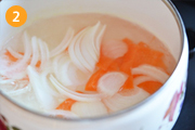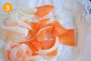 人参・玉ねぎは薄くスライスし、さっとゆでる。
