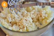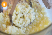 (1)のじゃがいもをボールに入れ、ポテトマッシャーなどを利用してよくつぶす。