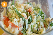 (6)にマヨネーズを加えて円を描くようによく混ぜる。
