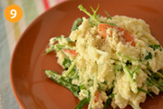 (8)をお皿にもりつけ、こしょうを散らしてできあがり。