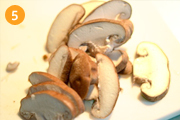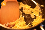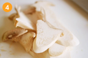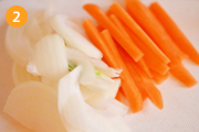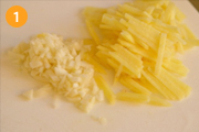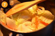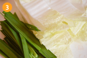 白菜は2cm幅にスライス、にらは5cmはばに切る。