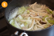 (4)に(1)(2)(3)を入れて15分ほど中火~弱火で煮る。
