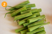 別の鍋に水を沸騰し、②のさやいんげんを入れて3~4分ほど茹でてお皿に取り出す。