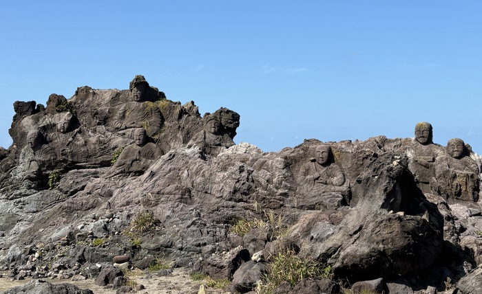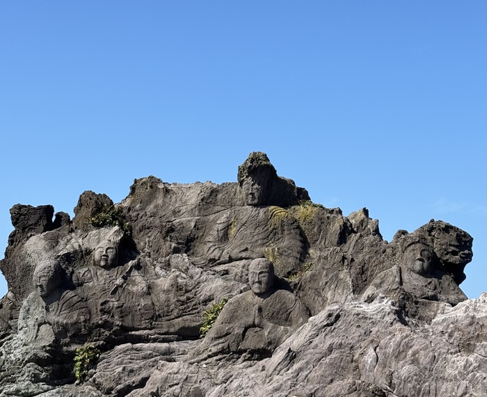 ( 答え )海と島の投稿かと思わせながら、岩に気付いてくれましたか?十六オカン、それはおかあちゃんやないかーい!、十六アカン、それはダメなやつや!、正解は、十六羅漢の彫刻がされていますでしたー。皆さん、最初の投稿で気付いてくれたかな?