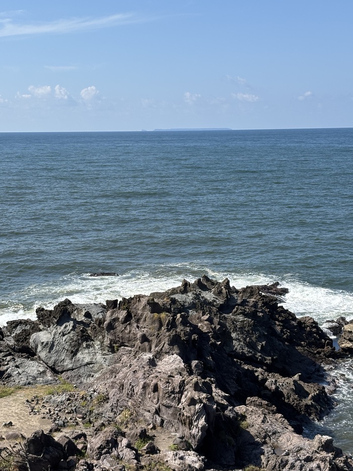 そして、この写真の遠方福原遥か彼方に眼を細めて見えるのは、ウラジオストック。んな訳がない(笑)。山形県酒田市からフェリーで75分・飛島です。海がめっちゃきれいで、サザエなど魚介類が美味しいらしいです。