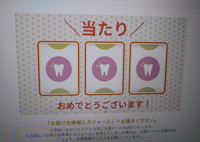 歯ブラシ大好き! 2022/10/25 コース3 ハブラシ初当選!!( ;∀;) 2023/01/29 コース3 2回目当選! 7/7 9:46/コース3当選! 11/24 10:31/久々当選(T-T) 2024/1/19当選🪥2/28当選🪥3/16当選🪥5/7オーラルヘルス対策セット当選!6/1🪥7/1🪥9/20🪥10/22🪥11/19