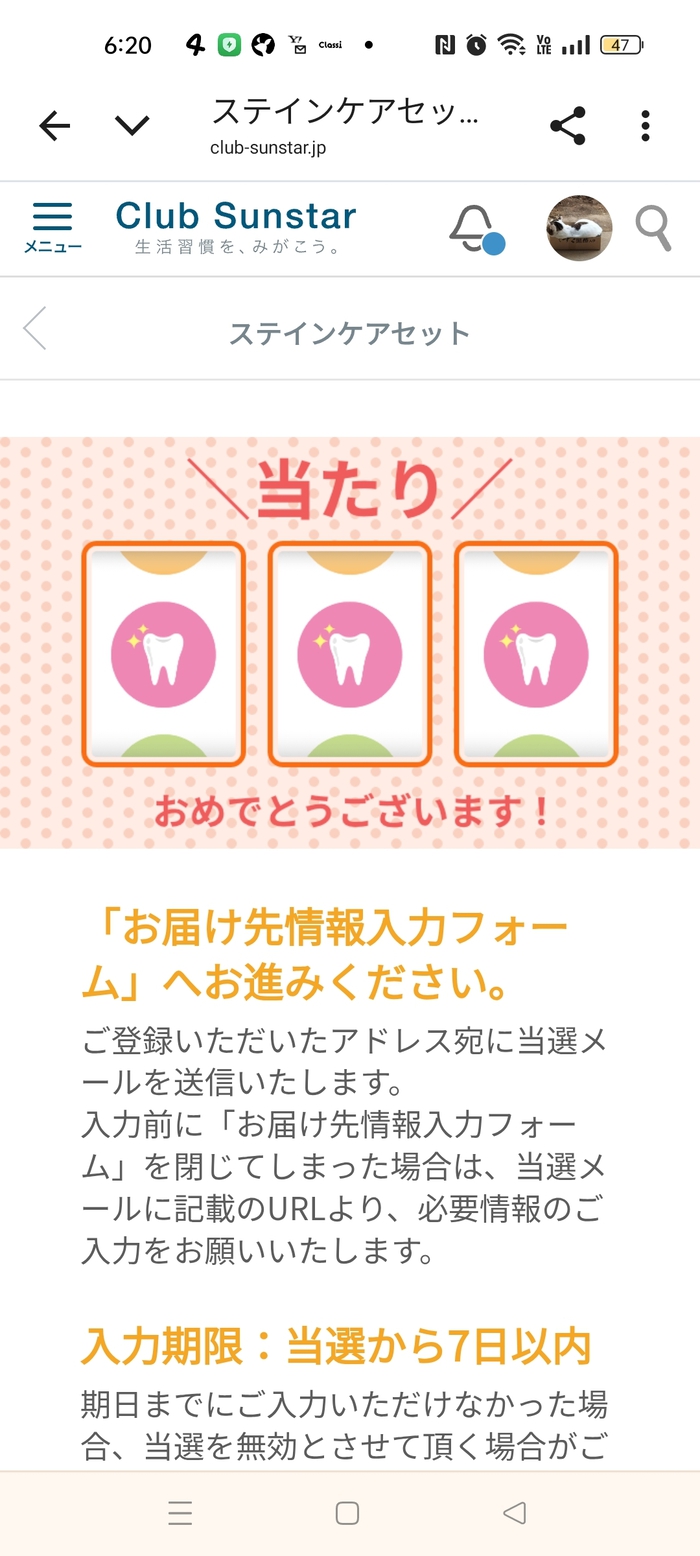 今月は、いつも当選する歯ブラシにも見放されもう当たらないかなぁ~と諦めていましたがステインケアセット当選しました😊