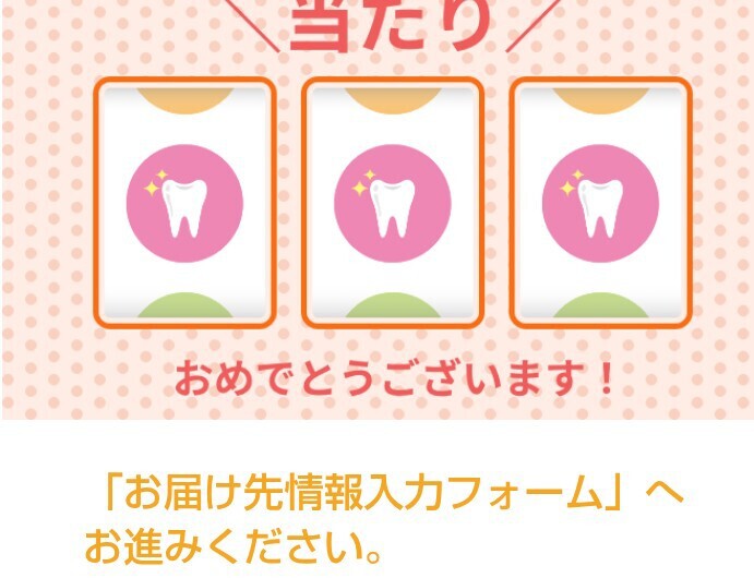 歯ブラシ大好き! 2022/10/25 コース3 ハブラシ初当選!!( ;∀;) 2023/01/29 コース3 2回目当選! 7/7 9:46/コース3当選! 11/24 10:31/久々当選(T-T) 2024/1/19当選🪥2/28当選🪥3/16当選🪥5/7オーラルヘルス対策セット当選!6/1🪥7/1🪥9/20🪥10/22🪥11/19