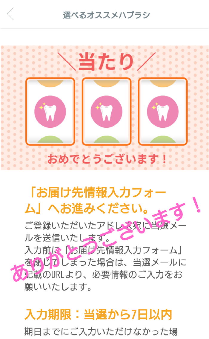 今月の歯ブラシ、当選しました\(^-^)/