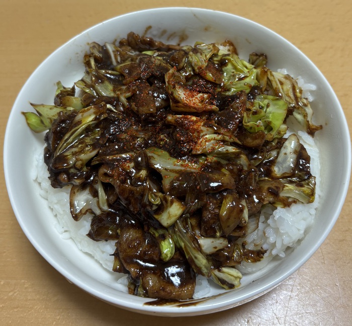 なんかないかなあーと思いついたのが、やっつけ回鍋肉丼。すき焼き丼も白菜、きのこ、糸こんにゃく、豚肉、お豆腐、ネギを摂取できるので作ります♪