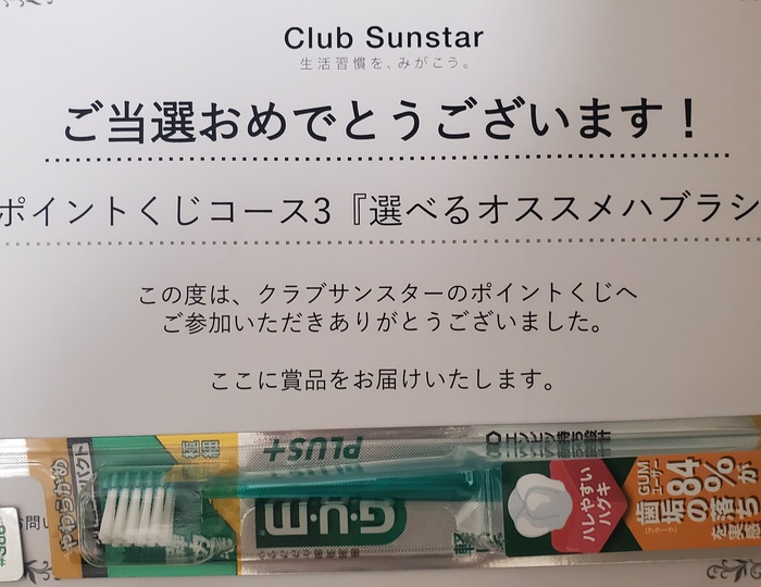 選べる歯ブラシの当選の商品到着(GUM、緑色)