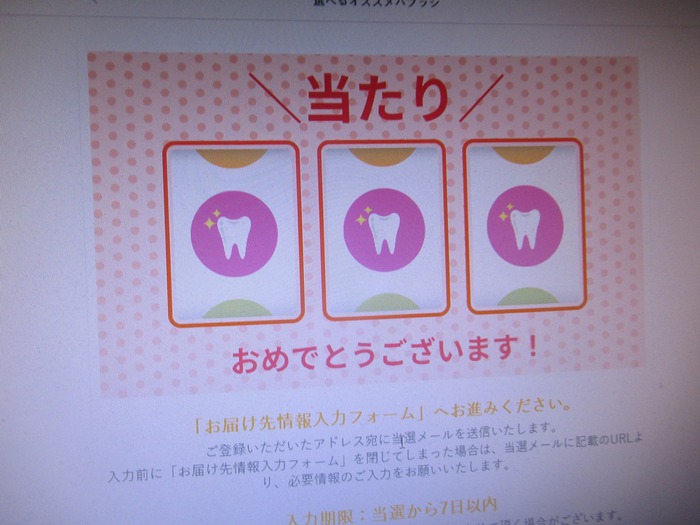 歯ブラシが当たりました♪