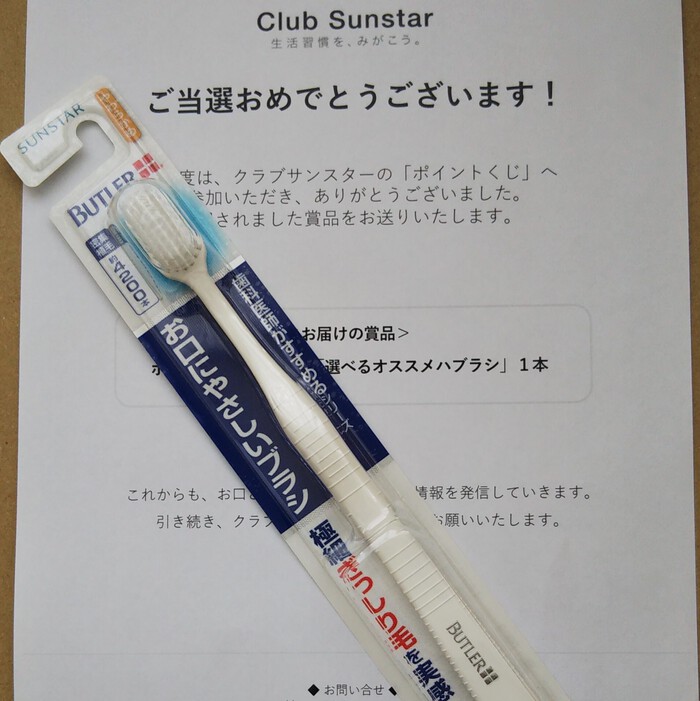 遅くなりましたが、6月当選品の歯ブラシ届いています♪今回はバトラーにしました♪