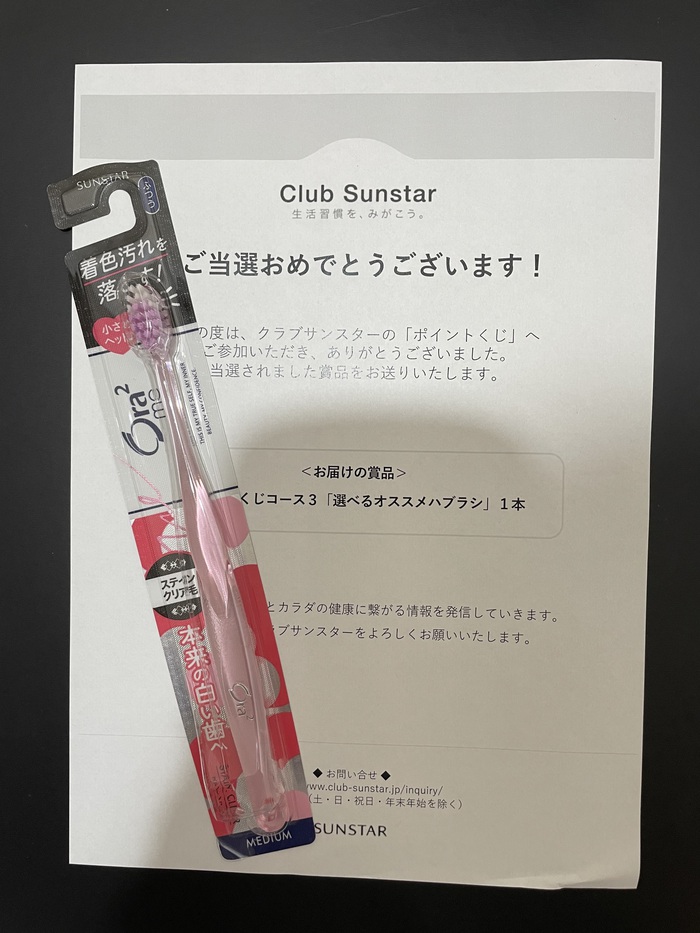 歯ブラシ大好き! 2022/10/25 コース3 ハブラシ初当選!!( ;∀;) 2023/01/29 コース3 2回目当選! 7/7 9:46/コース3当選! 11/24 10:31/久々当選(T-T) 2024/1/19当選🪥2/28当選🪥3/16当選🪥5/7オーラルヘルス対策セット当選!6/1🪥7/1🪥9/20🪥10/22🪥11/19