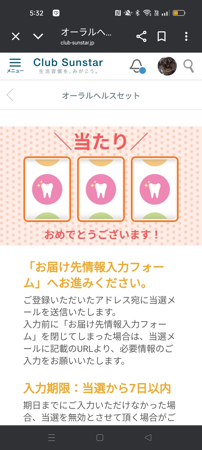 歯ブラシ大好き! 2022/10/25 コース3 ハブラシ初当選!!( ;∀;) 2023/01/29 コース3 2回目当選! 7/7 9:46/コース3当選! 11/24 10:31/久々当選(T-T) 2024/1/19当選🪥2/28当選🪥3/16当選🪥5/7オーラルヘルス対策セット当選!6/1🪥7/1🪥9/20🪥10/22🪥11/19 2025年一度も当選せず....😢最近電動アシスト歯ブラシを使い始めましたけっこうイイっ